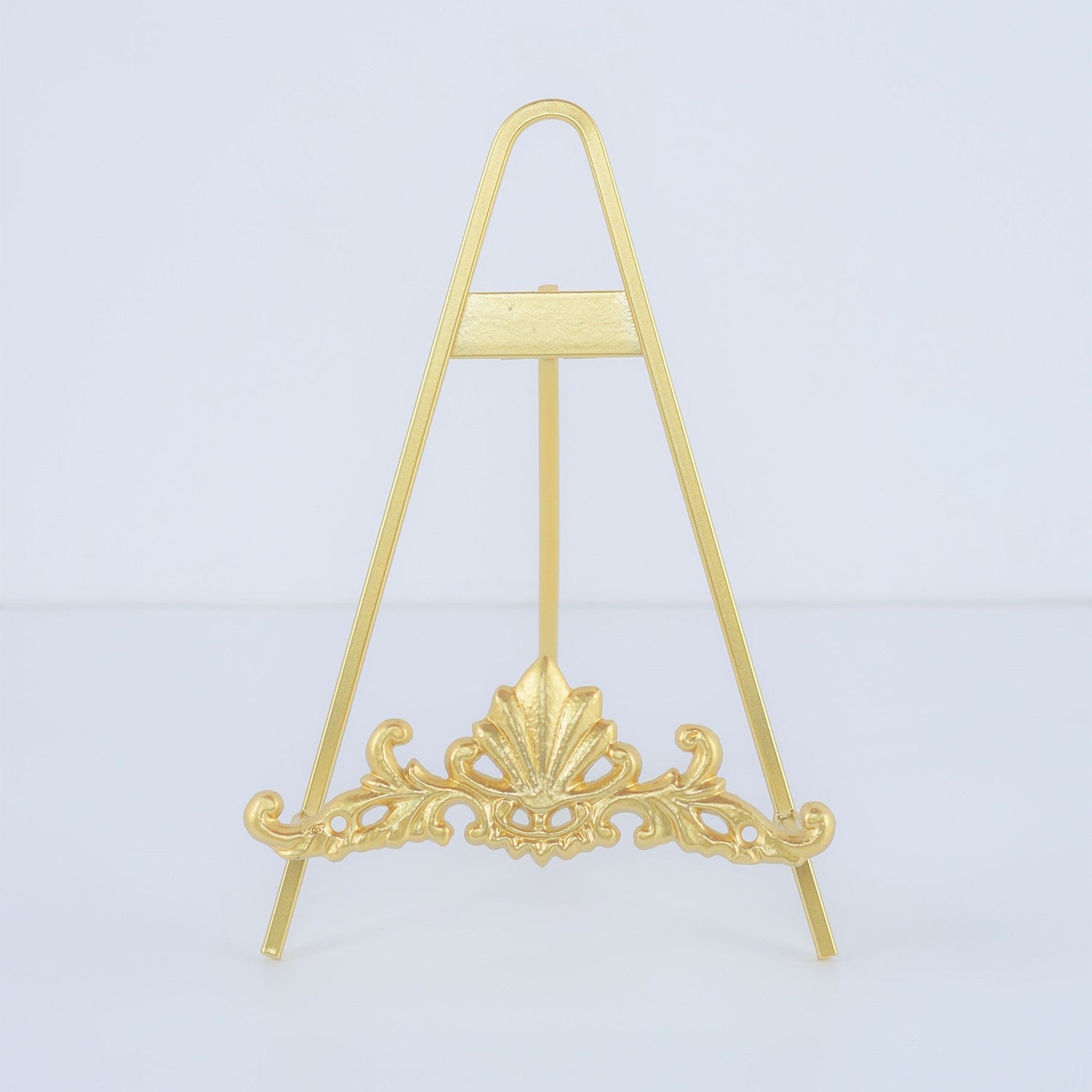 Display your prized art with a touch of vintage charm on our 10" Gold Ornate Easel. Stand tall at 10', with a brushed gold finish that exudes elegance. The 8-9' width accommodates various sizes, making it a versatile choice. A must-have for any art lover!