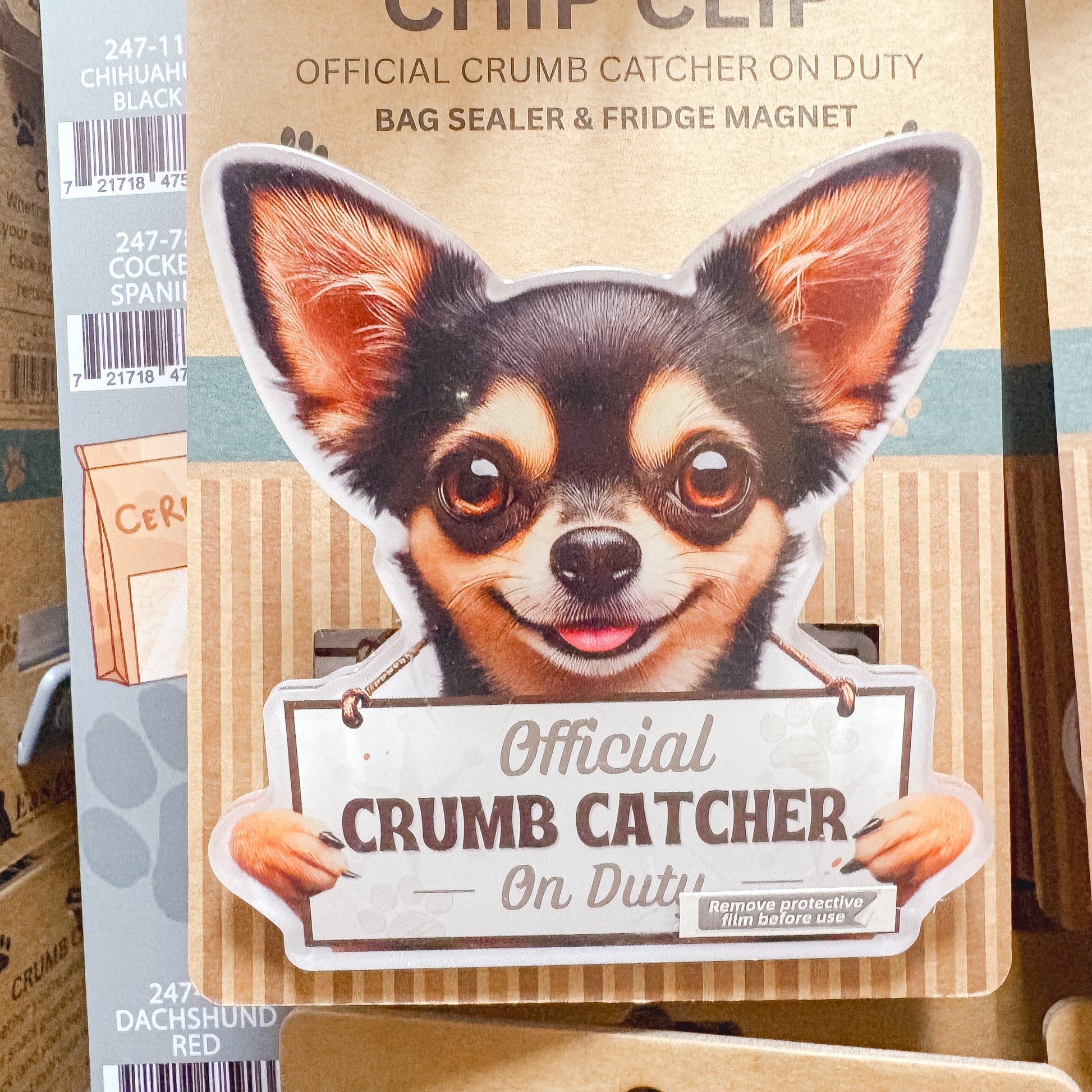 Keep your snacks fresh with a touch of furry charm! These fun and functional chip clips feature a wide variety of popular dog and cat breeds, each holding a sign that says “Official Crumb Catcher On Duty.” With a strong magnetic back, they’re perfect for sealing snacks or sticking on the fridge to hold notes, photos, and reminders. A must have for pet lovers — cute, practical, and breed-specific!