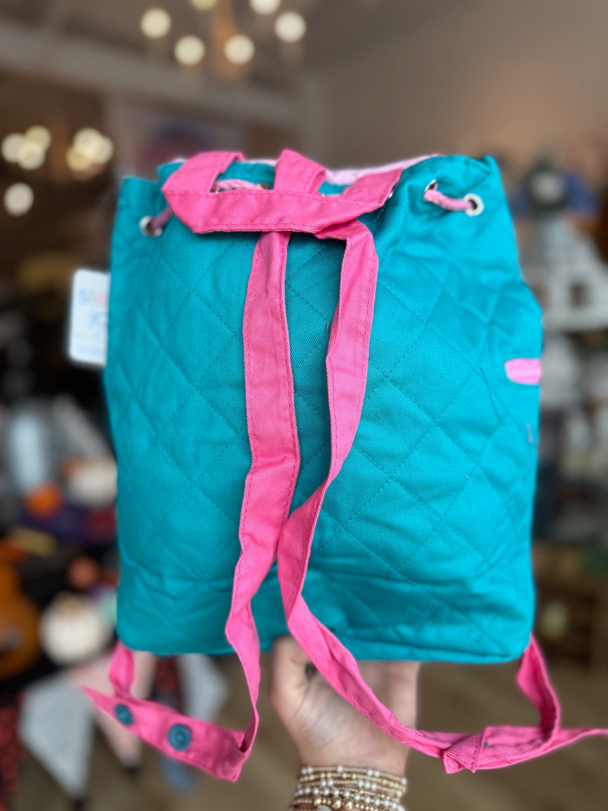 Enhance your child's backpack game with our Quilted Backpack – butterfly edition. Measuring 13”W x 11”H, this backpack features charming farm designs and a flower keychain. Keep items secure with a side pocket and drawstring closure, completed with a magnetic clasp. Suitable for ages 3+, this backpack is perfect for school or day trips.